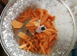 红薯切片,加适量牛奶放在料理机里打磨成泥。