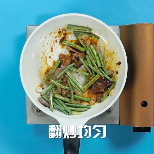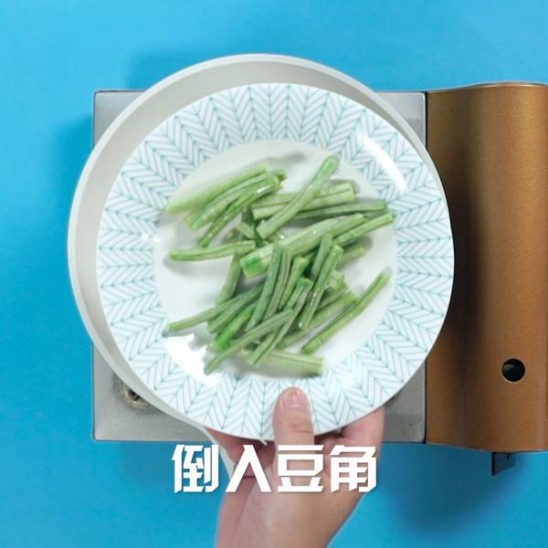 1、长豆角处理干净,摘成长段。