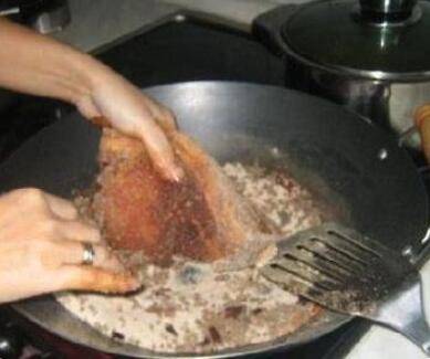 3、等待冷却后,加入准备好的生抽、酱油、料酒、五香粉、胡椒粉,均匀的抹在五花肉上;