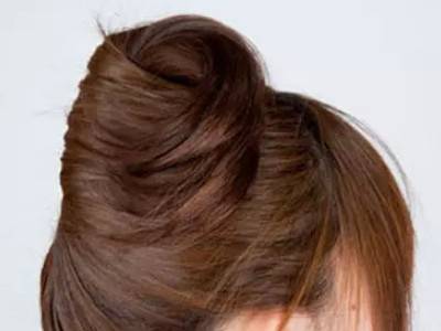 2、用梳子高高梳整齐,马尾顺时针扭成一团。