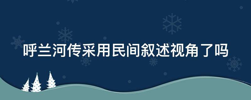 呼兰河传没有采用民间叙述视角,使用了第一人称的成人和童年互相融合的叙事视角,所运用的不同叙事视角使文本中的批判具备了多样性的效果。其前两章采用成人俯视叙事,具有散文小说化写作的特点;后五章及尾声则采用儿童仰视、平视叙事,体现了小说散文化的特色。《呼兰河传》是中国作家萧红创作的长篇小说。该作品于1940年9月1日见载于香港《星岛日报》,1940年12月20日,萧红于香港完成《呼兰河传》书稿创作,12月27日全稿连载完。该作品以萧红自己童年生活为线索,把孤独的童年故事串起来,形象地反映出呼兰这座小城当年的社会风貌、人情百态。