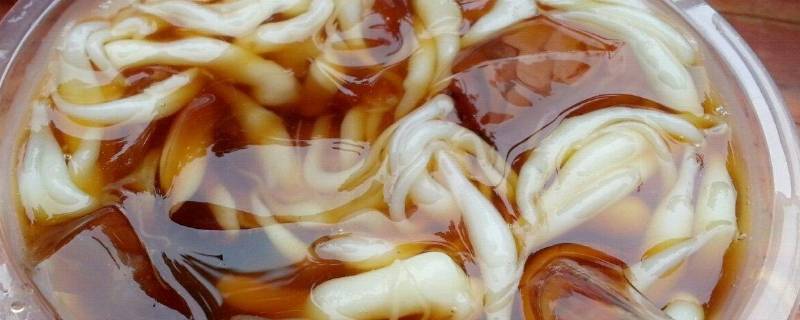 2、宜昌凉虾:宜昌凉虾是湖北省宜昌市的特产。宜昌凉虾用大米制浆煮熟,用漏勺漏入凉水盆中而成。因头大尾细形似虾,故此得名。用它配入红糖水,是夏季解渴佳品,香甜软嫩,入口冰凉。