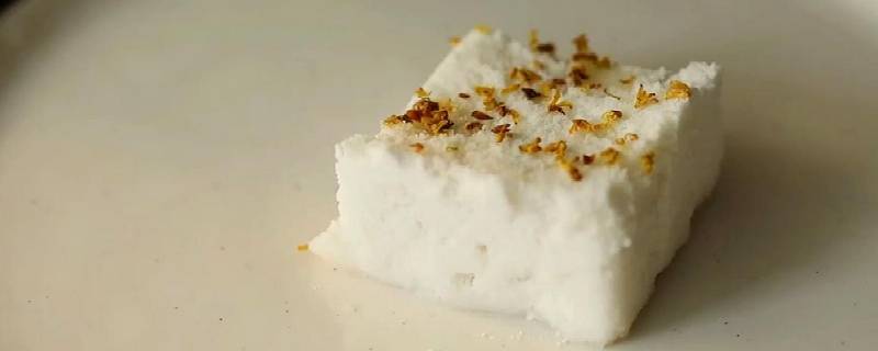 把凉透的雪花糕从冰箱内拿出来切块,块的大小依每个人的喜好,但是不宜过大。切好后裹椰蓉,装盘。