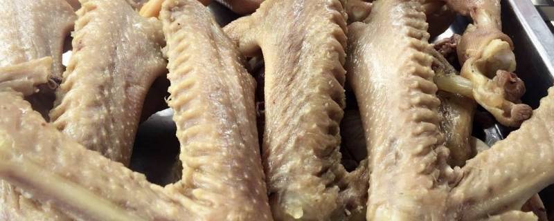 用料:鹅翅五只、食盐适量、花椒适量、姜六片、葱一根、八角一个、香叶两片、料酒两勺、柠檬一片。
