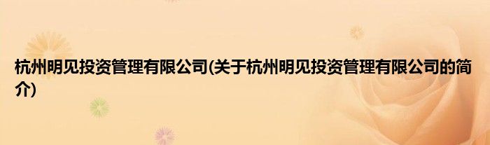 本文关于杭州明见投资管理有限公司的简介就讲解完毕,希望对大家有所帮助。