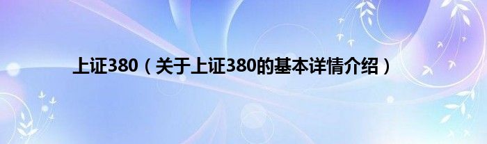 本文关于上证380的基本详情介绍就讲解完毕,希望对大家有所帮助。