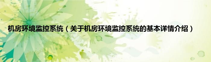 本文关于机房环境监控系统的基本详情介绍就讲解完毕,希望对大家有所帮助。