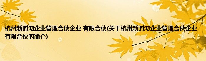 本文关于杭州新时沏企业管理合伙企业 有限合伙的简介就讲解完毕,希望对大家有所帮助。