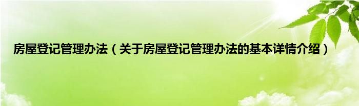 本文关于房屋登记管理办法的基本详情介绍就讲解完毕,希望对大家有所帮助。