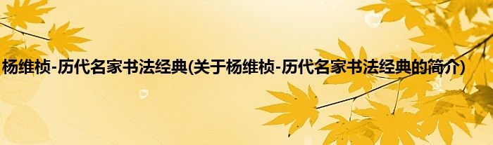 1、 《杨维桢-历代名家书法经典》是一本图书。