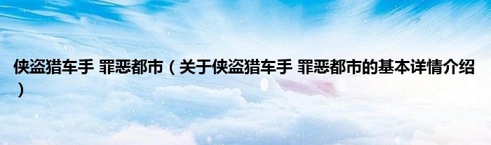 本文关于侠盗猎车手 罪恶都市的基本详情介绍就讲解完毕,希望对大家有所帮助。