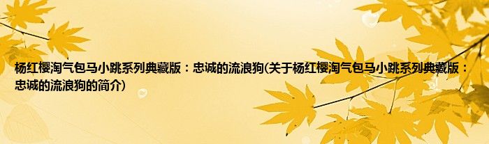 本文关于杨红樱淘气包马小跳系列典藏版:忠诚的流浪狗的简介就讲解完毕,希望对大家有所帮助。