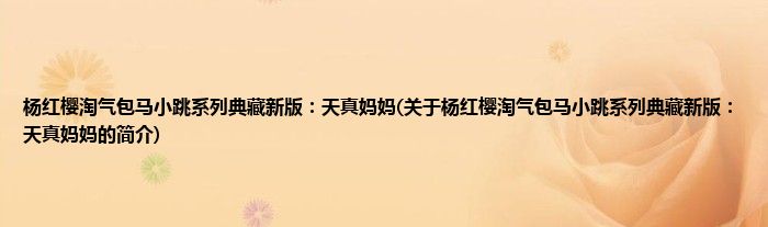 本文关于杨红樱淘气包马小跳系列典藏新版:天真妈妈的简介就讲解完毕,希望对大家有所帮助。