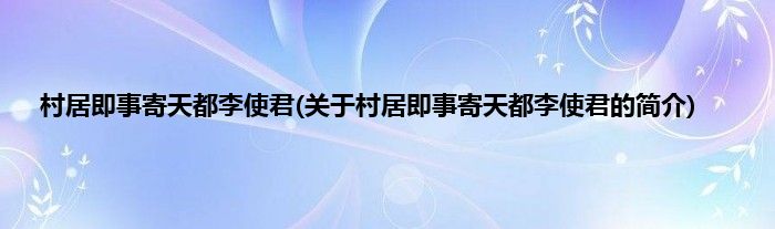 本文关于村居即事寄天都李使君的简介就讲解完毕,希望对大家有所帮助。