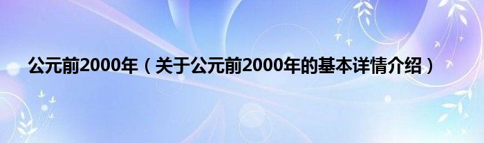 本文关于公元前2000年的基本详情介绍就讲解完毕,希望对大家有所帮助。