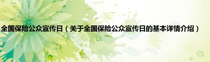 本文关于全国保险公众宣传日的基本详情介绍就讲解完毕,希望对大家有所帮助。
