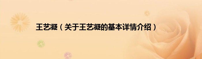 王艺凝(关于王艺凝的基本详情介绍)