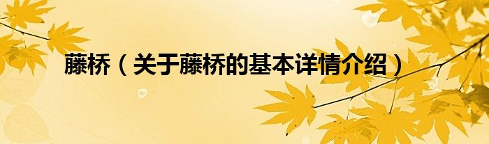 本文关于藤桥的基本详情介绍就讲解完毕,希望对大家有所帮助。
