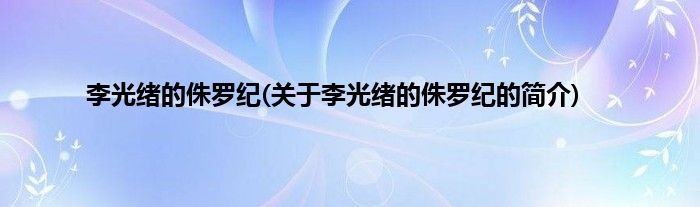本文关于李光绪的侏罗纪的简介就讲解完毕,希望对大家有所帮助。