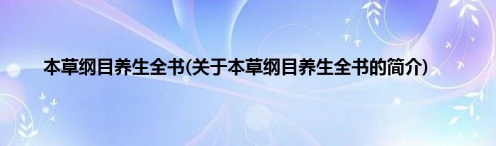 本文关于本草纲目养生全书的简介就讲解完毕,希望对大家有所帮助。