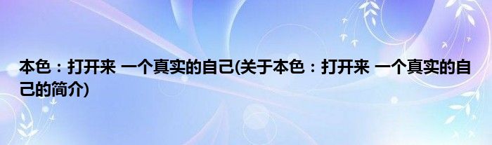 本文关于本色:打开来,一个真实的自己的简介就讲解完毕,希望对大家有所帮助。