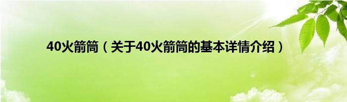 大家好我是小蝌蚪,40火箭筒,关于40火箭筒的基本详情介绍很多人还不知道,那么现在让我们一起来看看吧!