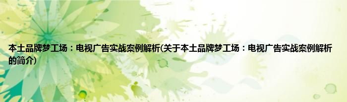 本文关于本土品牌梦工场:电视广告实战案例解析的简介就讲解完毕,希望对大家有所帮助。
