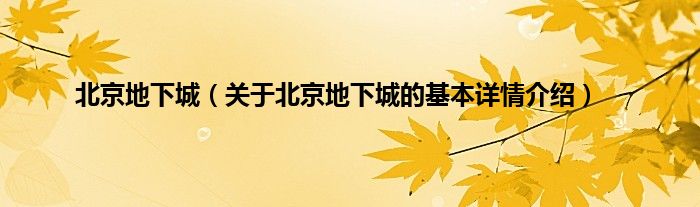 本文关于北京地下城的基本详情介绍就讲解完毕,希望对大家有所帮助。