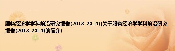 本文关于服务经济学学科前沿研究报告(2013-2014)的简介就讲解完毕,希望对大家有所帮助。