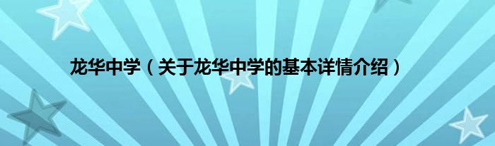 本文关于龙华中学的基本详情介绍就讲解完毕,希望对大家有所帮助。