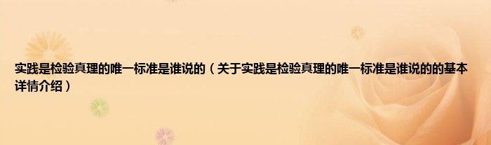 本文关于实践是检验真理的唯一标准是谁说的的基本详情介绍就讲解完毕,希望对大家有所帮助。