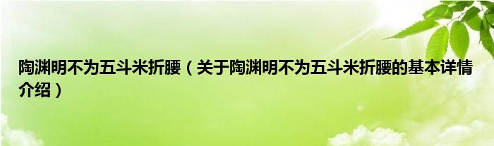 本文关于陶渊明不为五斗米折腰的基本详情介绍就讲解完毕,希望对大家有所帮助。