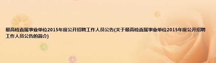 最高检直属事业单位2015年度公开招聘工作人员公告(关于最高检直属事业单位2015年度公开招聘工作人员公告的简介)