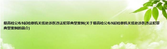 1、 最高检公布9起检察机关惩处涉医违法犯罪典型案例是最高人民检察院于2015年06月23日发布。