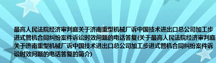 本文关于最高人民法院经济审判庭关于济南重型机械厂诉中国技术进出口总公司加工步进式管机合同纠纷案件诉讼时效问题的电话答复的简介就讲解完毕,希望对大家有所帮助。