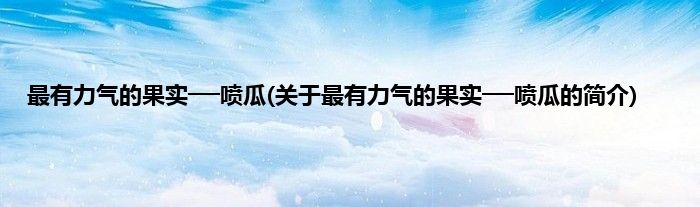 最有力气的果实──喷瓜(关于最有力气的果实──喷瓜的简介)