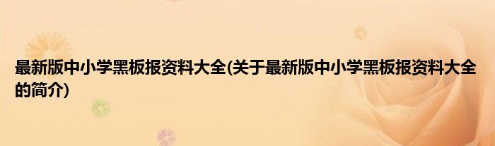 本文关于最新版中小学黑板报资料大全的简介就讲解完毕,希望对大家有所帮助。