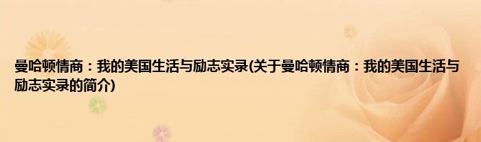 本文关于曼哈顿情商:我的美国生活与励志实录的简介就讲解完毕,希望对大家有所帮助。