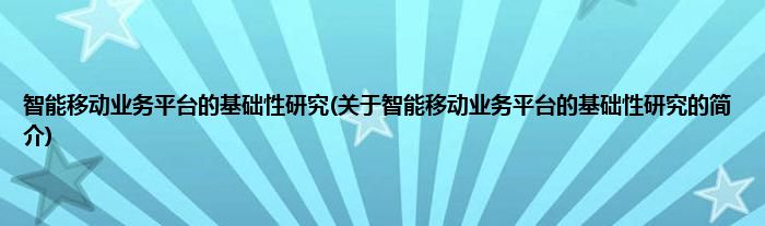 大家好,智能移动业务平台的基础性研究,关于智能移动业务平台的基础性研究的简介很多人还不知道,现在让我们一起来看看吧!