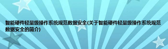 大家好,智能硬件轻量级操作系统规范数据安全,关于智能硬件轻量级操作系统规范数据安全的简介很多人还不知道,现在让我们一起来看看吧!