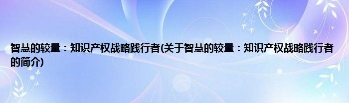 本文关于智慧的较量:知识产权战略践行者的简介就讲解完毕,希望对大家有所帮助。