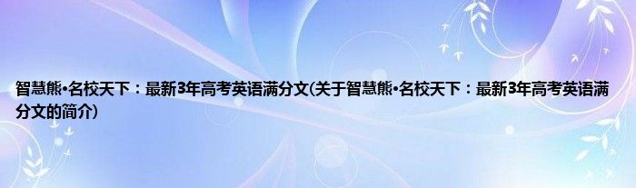 本文关于智慧熊·名校天下:最新3年高考英语满分文的简介就讲解完毕,希望对大家有所帮助。