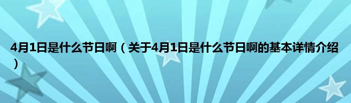 本文关于4月1日是什么节日啊的基本详情介绍就讲解完毕,希望对大家有所帮助。