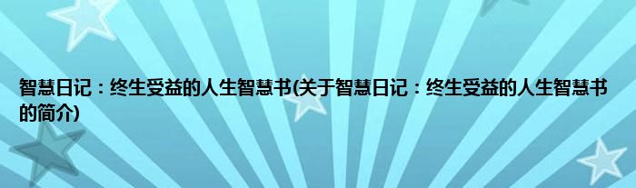 本文关于智慧日记:终生受益的人生智慧书的简介就讲解完毕,希望对大家有所帮助。