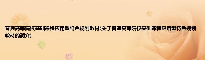 本文关于普通高等院校基础课程应用型特色规划教材的简介就讲解完毕,希望对大家有所帮助。