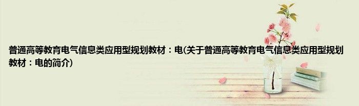 普通高等教育电气信息类应用型规划教材:电(关于普通高等教育电气信息类应用型规划教材:电的简介)