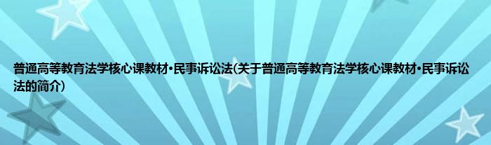 大家好,普通高等教育法学核心课教材·民事诉讼法,关于普通高等教育法学核心课教材·民事诉讼法的简介很多人还不知道,现在让我们一起来看看吧!