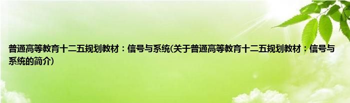 本文关于普通高等教育十二五规划教材:信号与系统的简介就讲解完毕,希望对大家有所帮助。