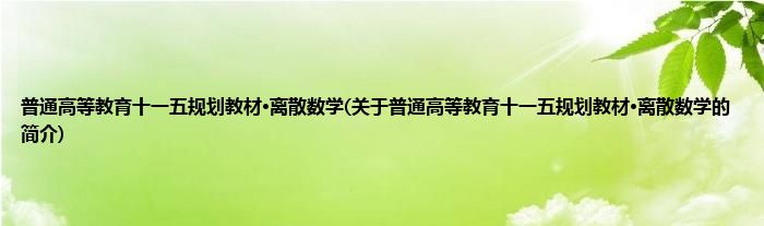 本文关于普通高等教育十一五规划教材·离散数学的简介就讲解完毕,希望对大家有所帮助。