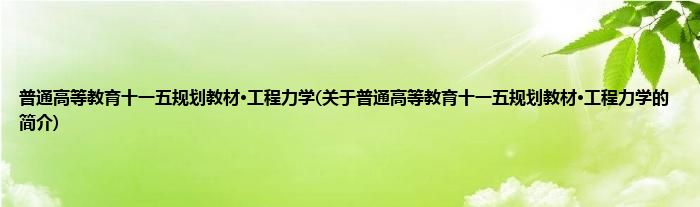 本文关于普通高等教育十一五规划教材·工程力学的简介就讲解完毕,希望对大家有所帮助。